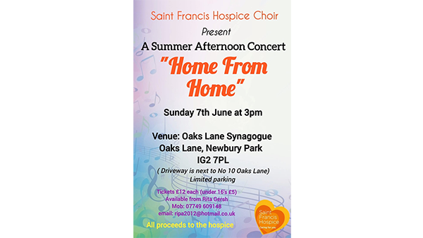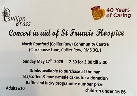 A concert is being held in aid of Saint Francis Hospice. Please come along and support this worthwhile event. We would love to see you there.